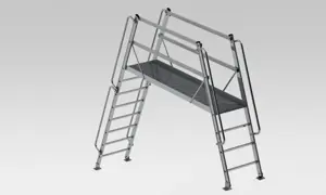 Escalera de puente profesional con luz libre debajo de la plataforma para trepar sobre líneas de producción o pasar sobre techos en presencia de obstáculos fijos.