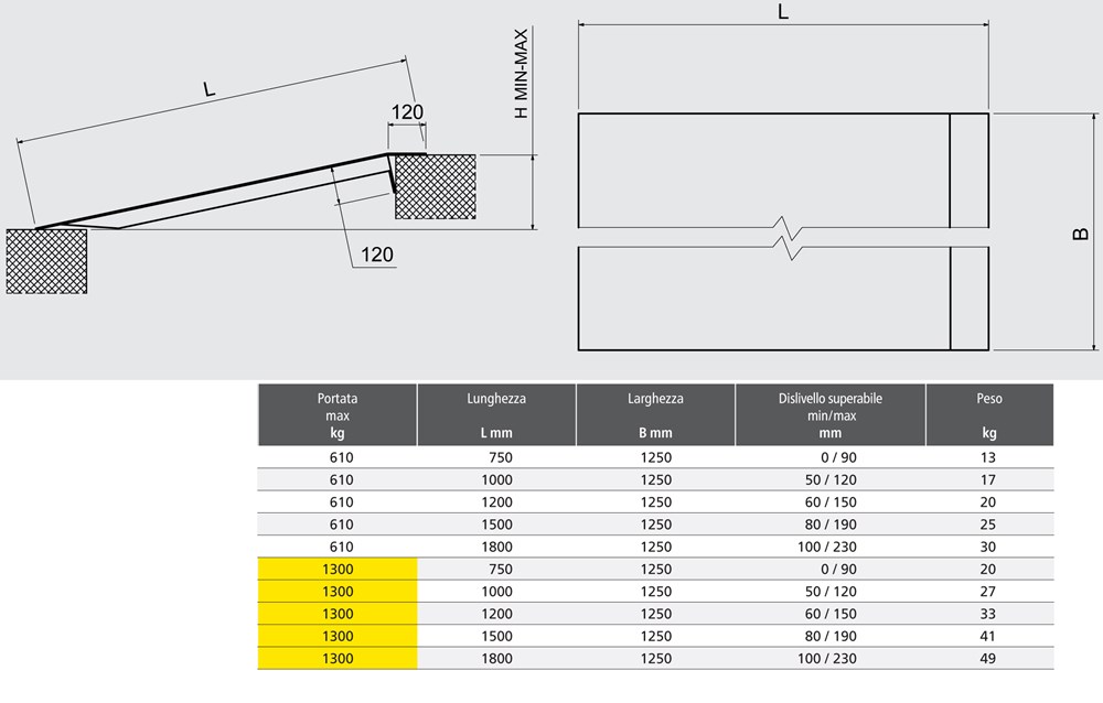 Fácil de colocar y de mover gracias a su peso reducido. Permite superar diferencias de altura de hasta 23 cm.