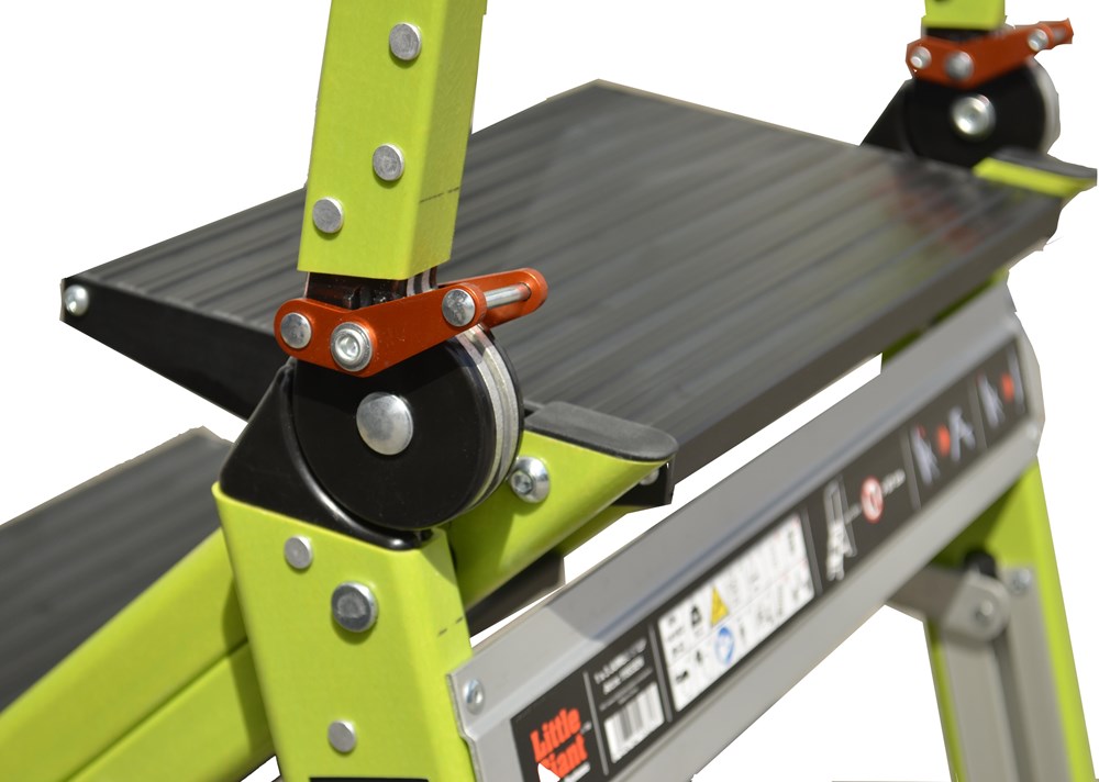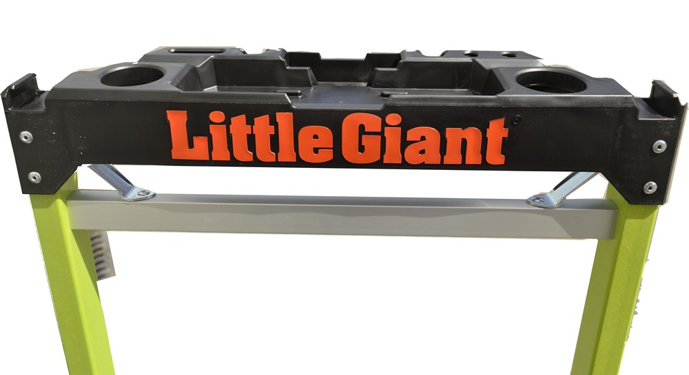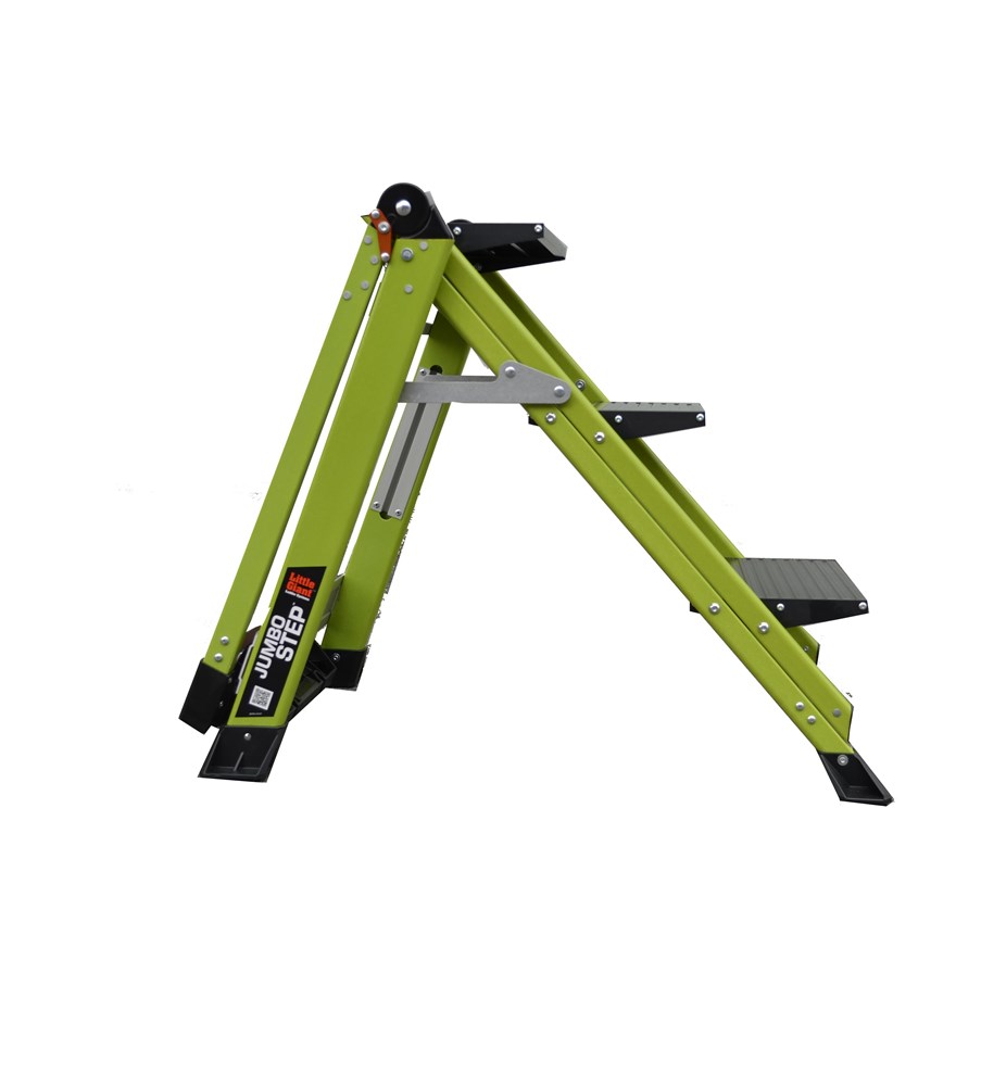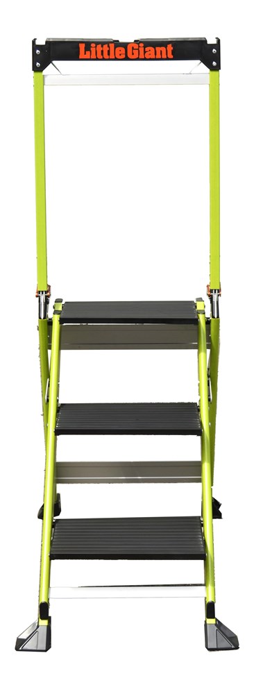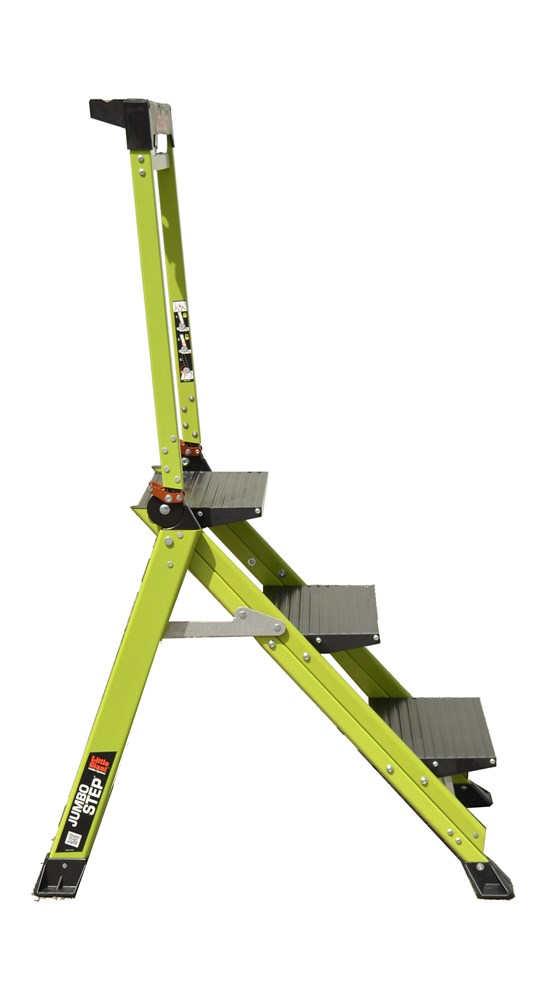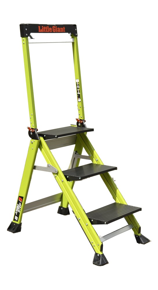 Taburete de fibra de vidrio con peldaño ancho y barandilla plegable
