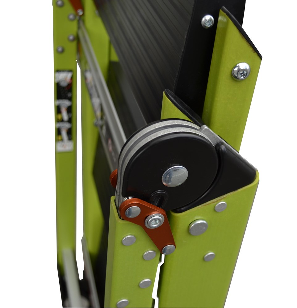 - Fabricado en fibra de vidrio con peldaños de aluminio anodizado