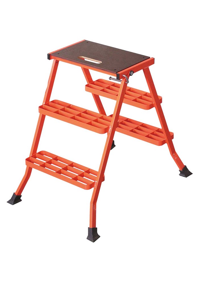 Taburete profesional de hierro con plataforma de multisustrato fenólico y peldaños en trámex