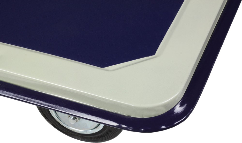 Diable en acier avec plate-forme et poignée de pédale pliable. Équipé de 4 roues pleines increvables (2 pivotantes). Capacité kg 150