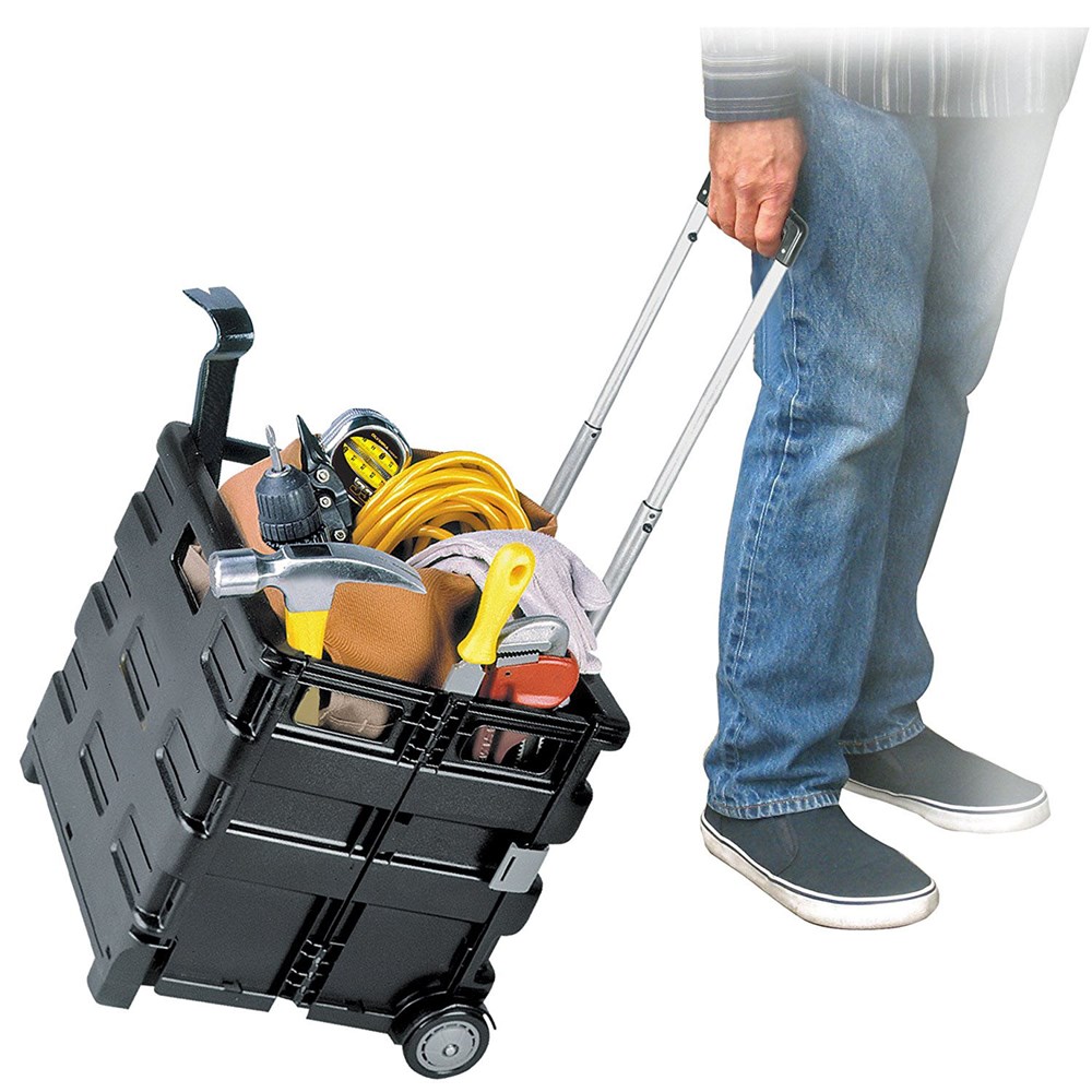 Chariot pliant compact avec poignée télescopique pour une utilisation légère (domestique).