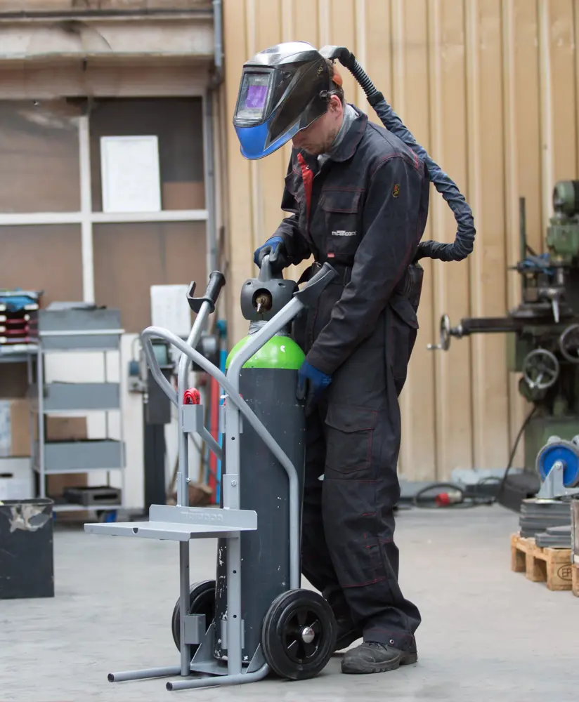 Porte-machine à soudage en acier et cylindre - roues pleines