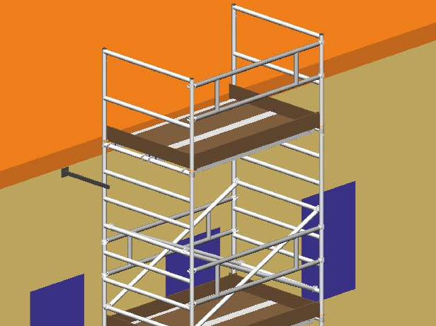 Composé de modules de 1,80 m faciles à manipuler et à transporter dans de petites fourgonnettes pour une hauteur maximum de travail de 12,70 m, il est idéal pour les travaux de peinture, d’installation et d’entretien.