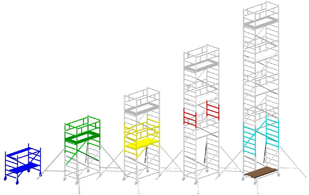 JOLLY peut être prolongé en alternant des modules intermédiaires D (avec plate-forme et garde-corps) et E jusqu’à une hauteur maximale de 11,67 m.