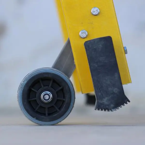 Deux roues d’un diamètre de 125 mm permettent de déplacer l’échelle en poussant.