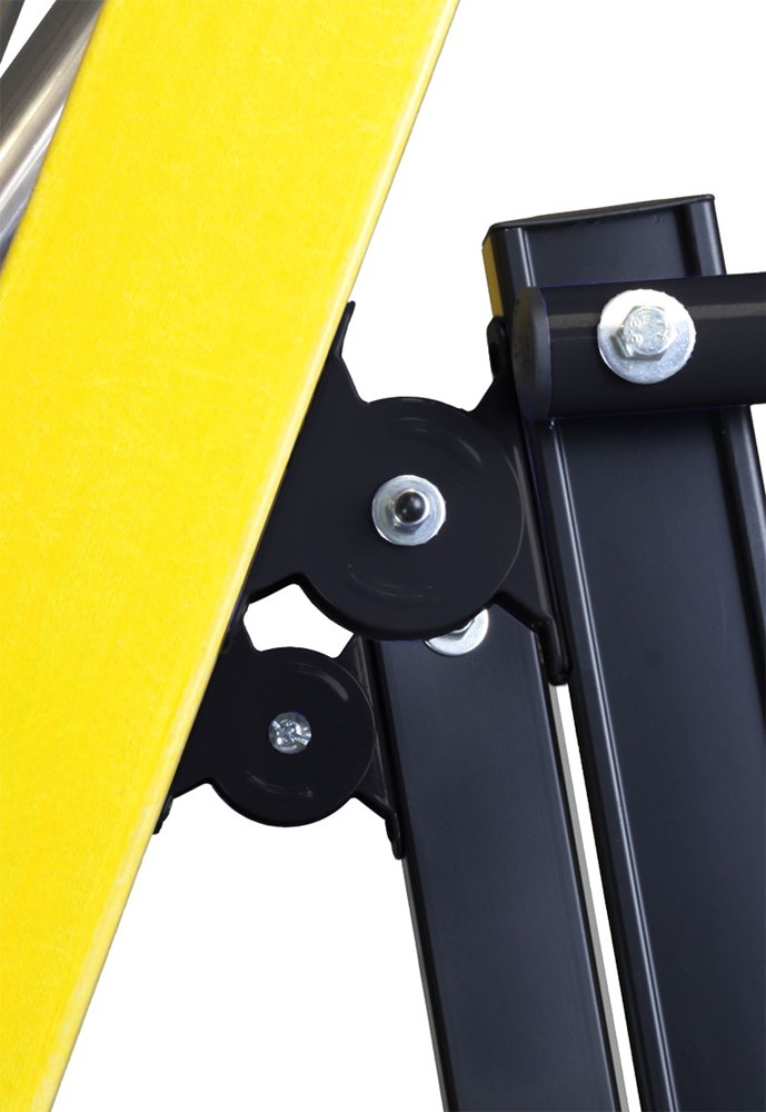 Les montants en fibre de verre offrent une isolation électrique et les marches en aluminium moletées antidérapantes donnent à l'escalier légèreté et maniabilité.