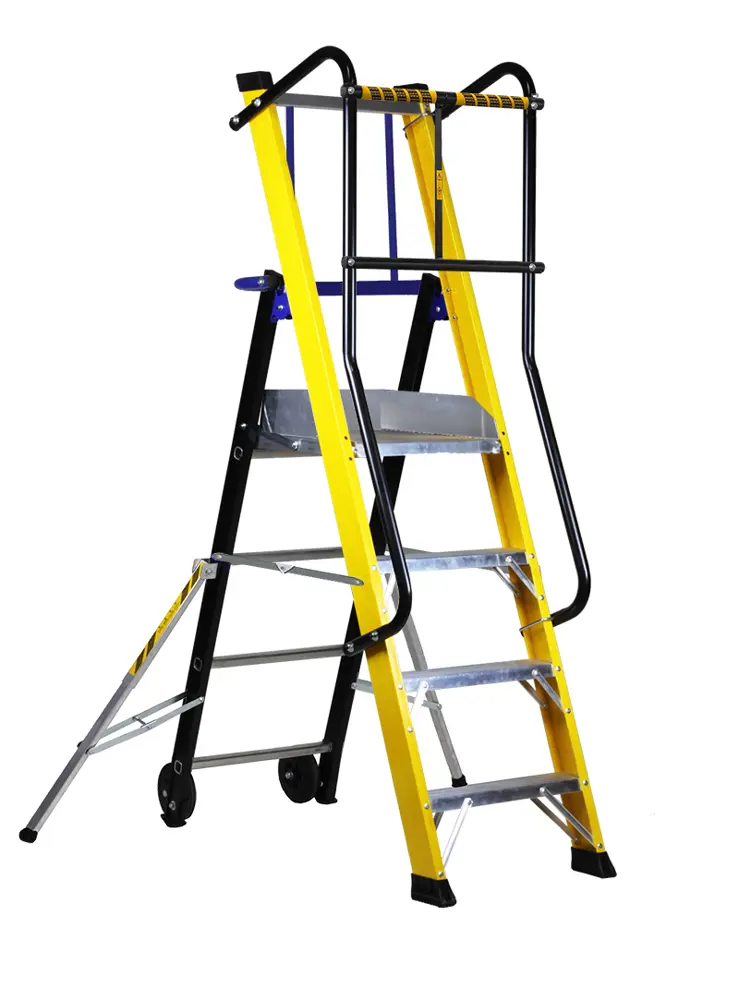 Échelle professionnelle isolée électriquement conçue pour les opérateurs qui travaillent à proximité de câbles, de prises ou d'autres sources d'électricité.