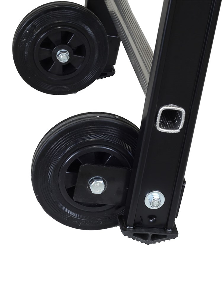 En fibre de verre pour usage intensif avec 2 roues, mains courantes, plate-forme et stabilizateurs de base pliables