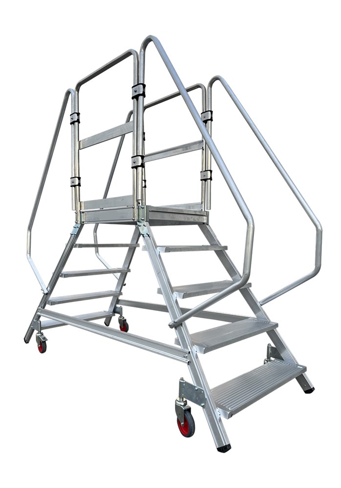 Escalier double à marches avec 4 roues auto-freinées