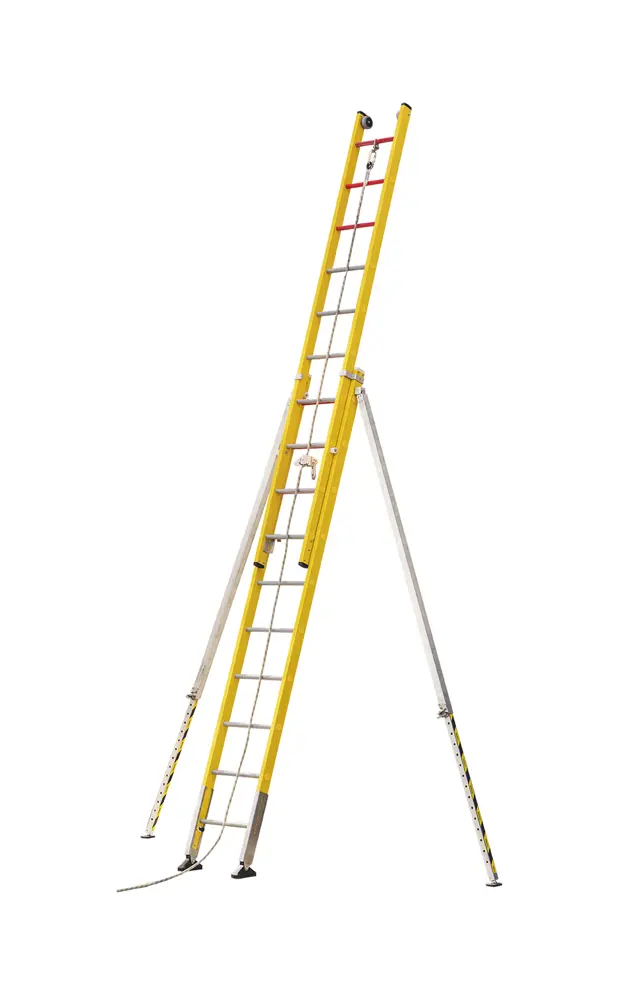 Il se compose d’une échelle à coulisse extensible en fibre de verre en deux sections isolant contre les agents électriques, magnétiques et thermiques.