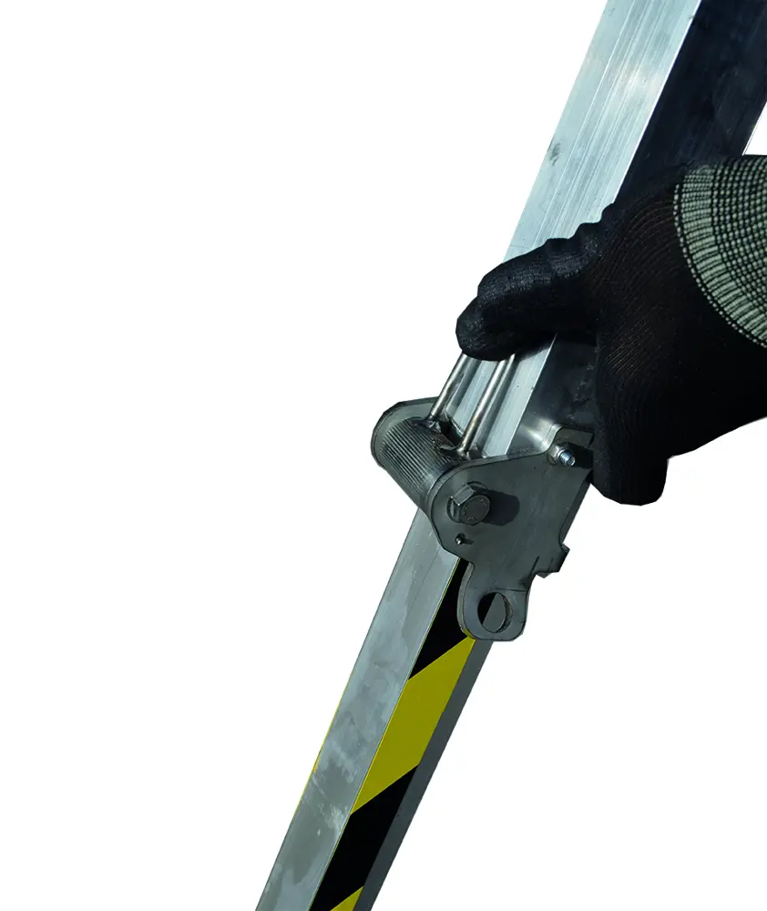 Le package comprend un tube d’étranglement à fixer au premier échelon à la base de l’échelle pour permettre à l’opérateur de récupérer en cas de maladie ou d’évanouissement.