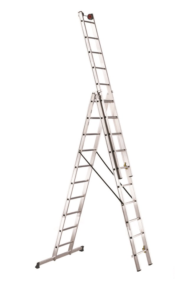 En trois corps, transformable aussi bien en échelle d’appui qu’en échelle double.