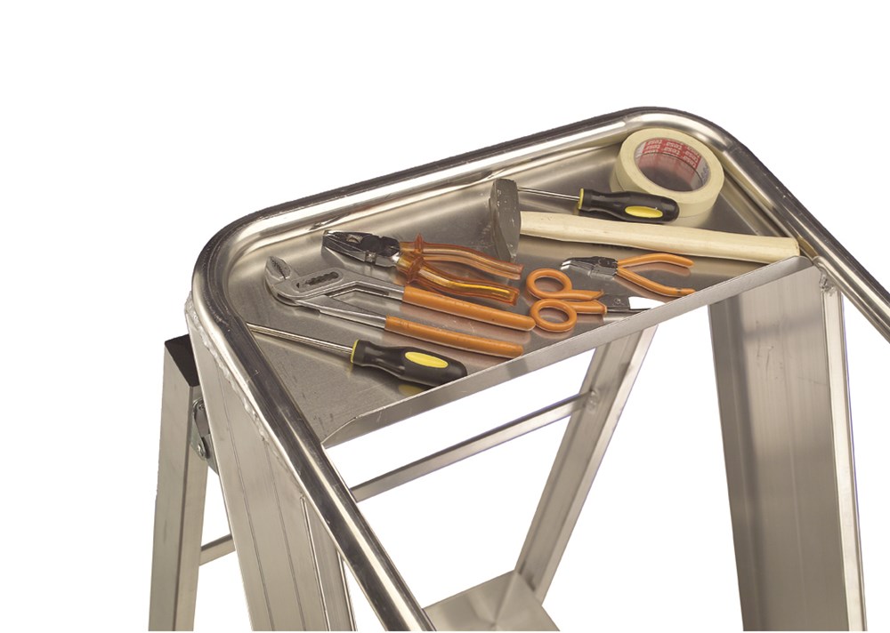 La rampe de montée, large et pratique, est très inclinée (55°), pour une montée plus simple assurée à la fois par les marches antidérapantes majorées d’une profondeur de 20 cm et d’une distance de 23 cm seulement l’une de l’autre et par la main courante, large et pratique.