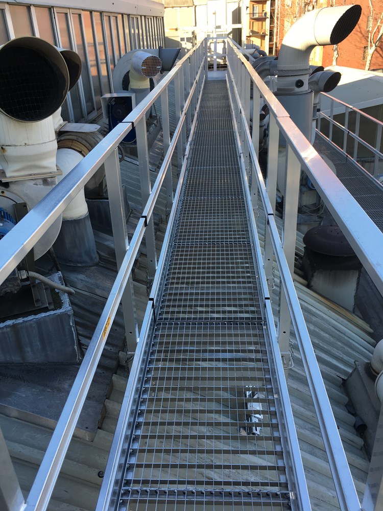 Les passerelles en aluminium SVELT permettent un accès sécurisé sur les toits fragiles ou glissants.