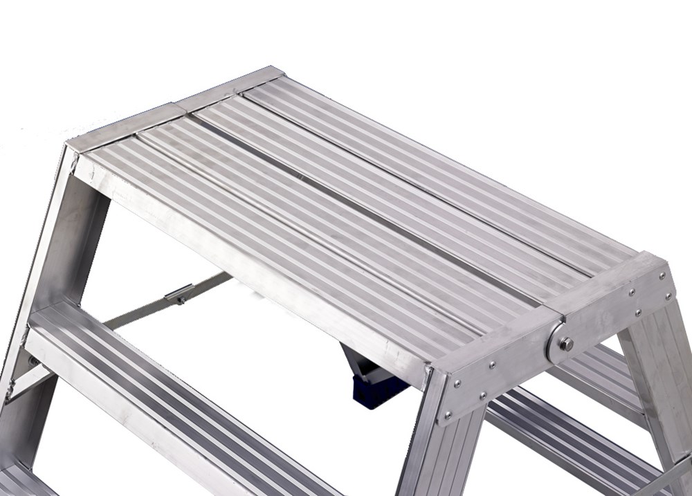 Doté d’une large plate-forme pour se tenir sans difficulté et en toute sécurité à la hauteur maximale et de barres de sécurité en acier anti-fermeture et ouverture.