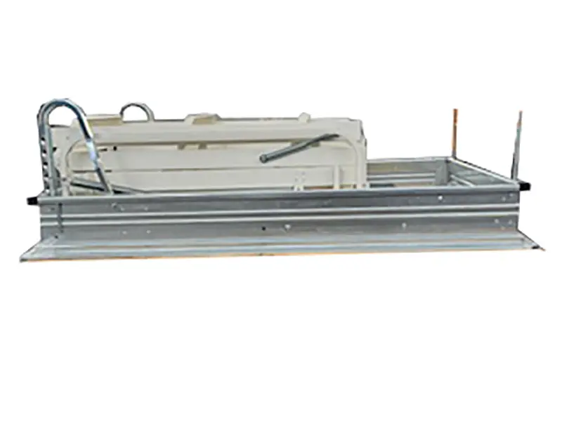Inclinaison 65° - Cadre en tôle de 1,2 mm d’épaisseur - Trappe en aggloméré de 1er choix de 16 mm d’épaisseur - Marches de marche 10 cm - Pour dalles standard de 15 à 28 cm
