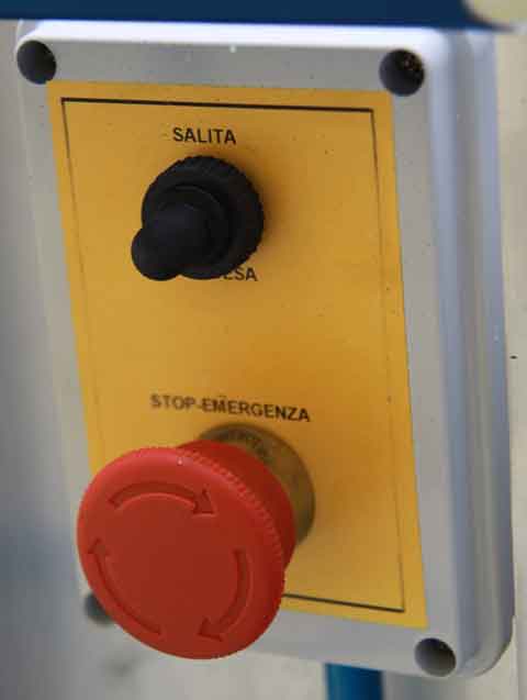 Commandes d’actionnement et bouton d’arrêt de sécurité sur le panier et le châssis.