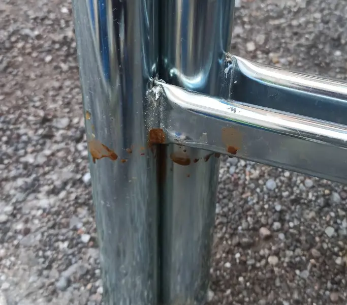 Se vengono usati all'eterno con la pioggia o abbandonati alle intemperie può accadere che la parte interna del tubo perda un pò di ruggine che, colando dal tubo o dai fori nei pioli, potrebbe macchiare la superficie esterna del tubo stesso.