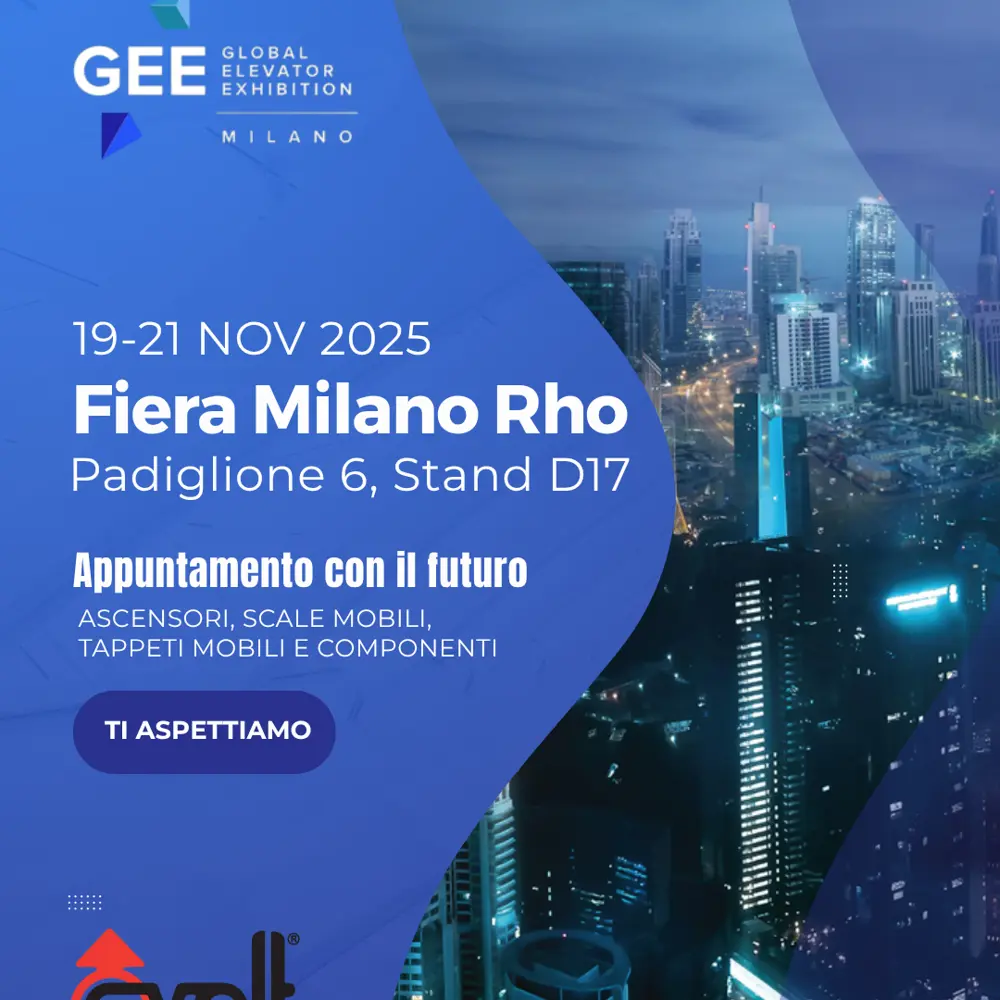 Saremo presenti alla fiera Global Elevator Exhibition (GEE) 2025 che si terra a MIlano dal 19 al 21 novembre2025. Manifestazione internazionale biennale dedicata al settore degli ascensori, delle scale mobili e delle soluzioni per la mobilità verticale.