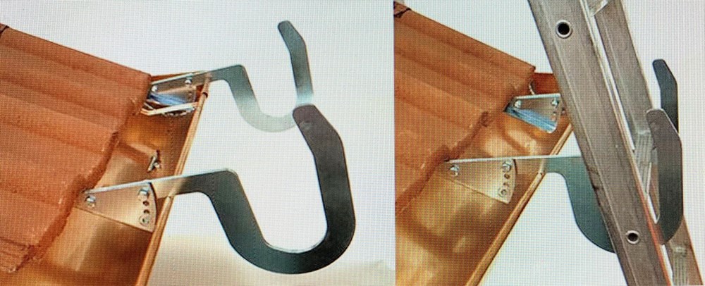 Ganci in acciaio zincato con fissaggio regolabile per fissare una scala alla grondaia