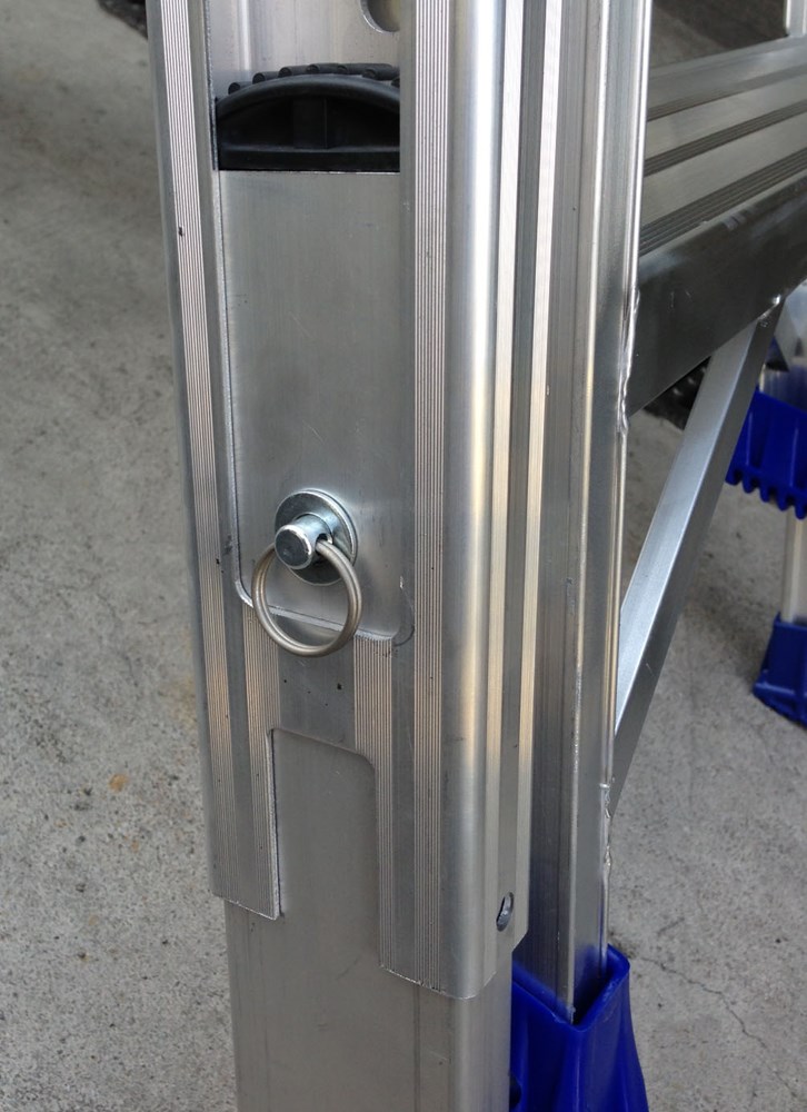 Il Livellatore Universale Svelt può essere montato su qualsiasi scala per consentire di lavorare su scalinate, gradini, dislivelli, marciapiedi, discese, ecc.