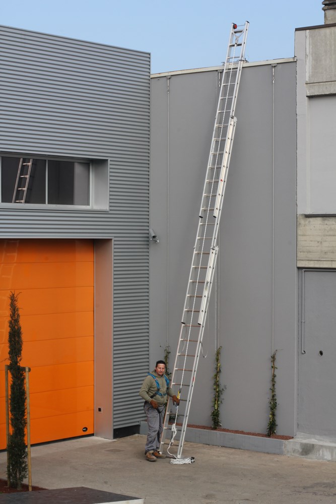 - Elevare la scala fino all'altezza desiderata ed ancorarla alla parete.