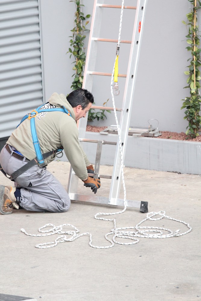 - Alla Staffa Superiore viene agganciata la fune dotata di dispositivo anticaduta.