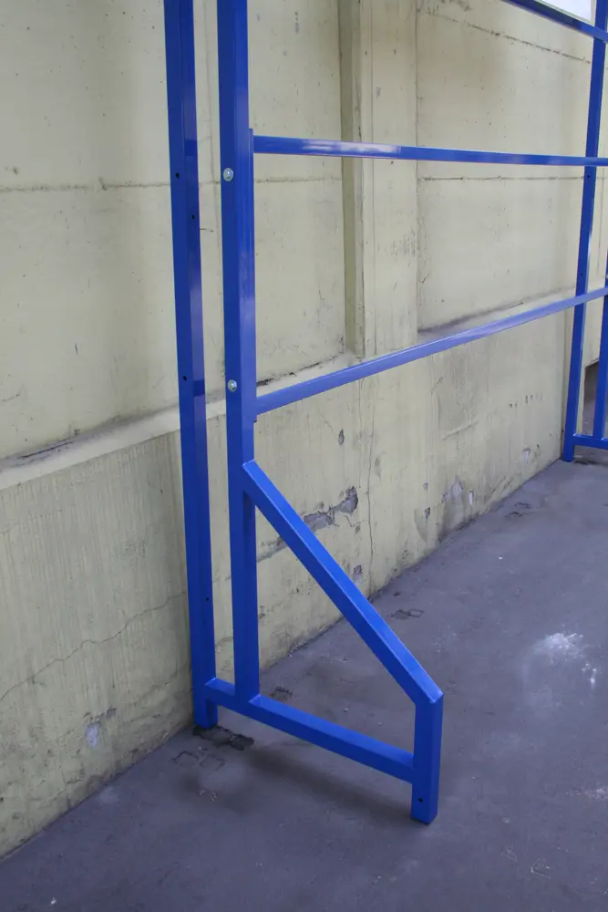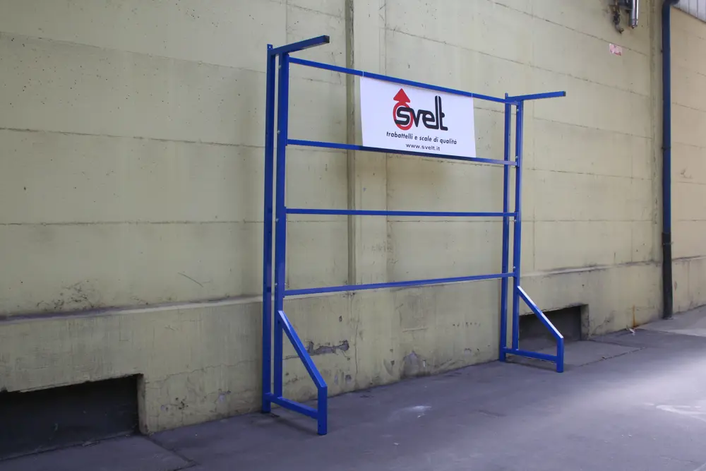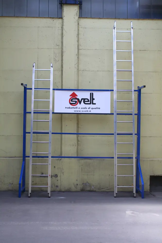 E' in grado di sostenere numerose scale e scalette occupando poco spazio a parete.