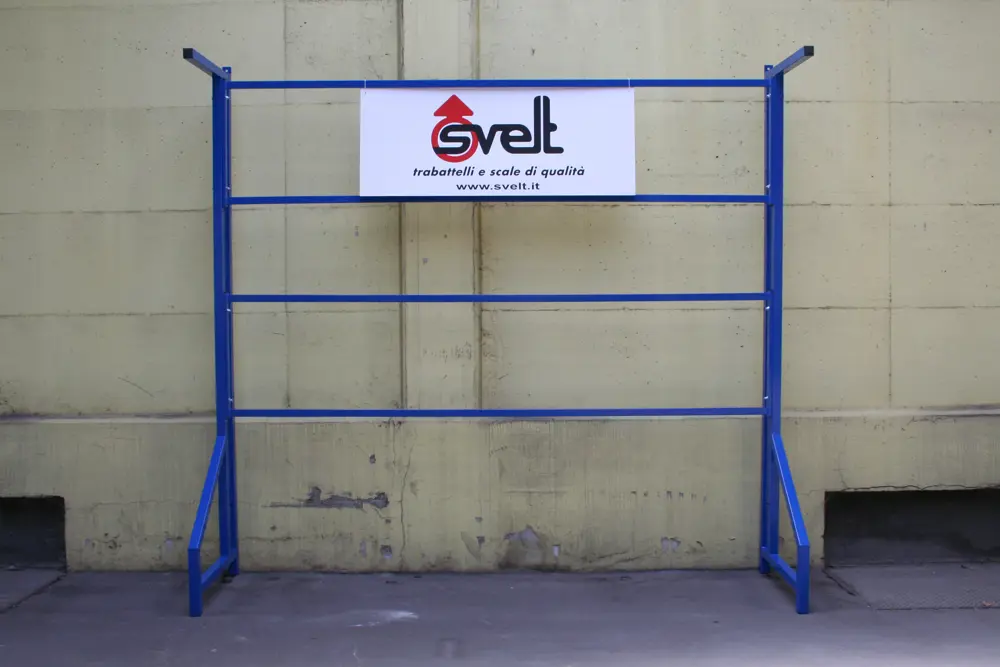 Consente il bloccaggio delle scale che non possono cadere lateralmente e possono essere legate con una catena e fissate all'espositore stesso per evitare il furto.