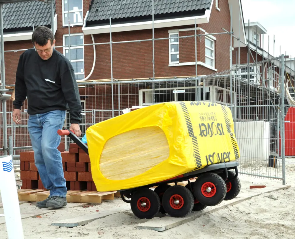 Prodotto con un telaio in acciaio verniciato e un piano in Nylon rinforzato consentono di spostare comodamente grossi pesi in giro per il cantiere.