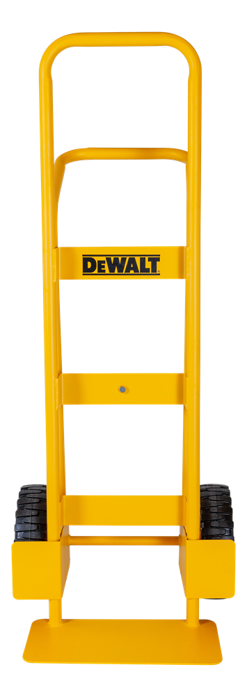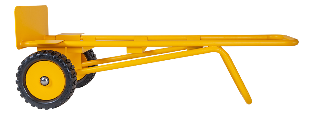 Carrello in robusto acciaio verniciato di color giallo per alzare pesi molto pesanti.