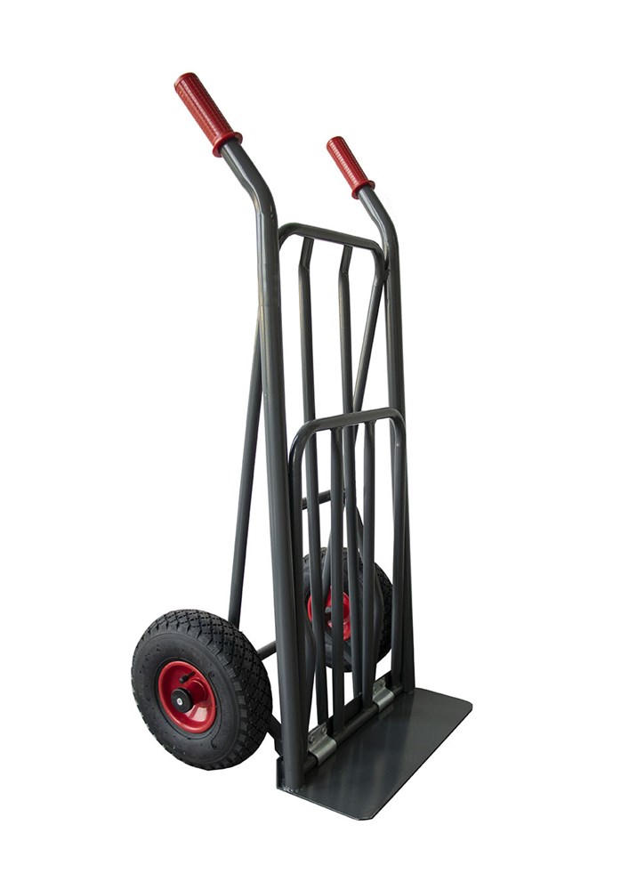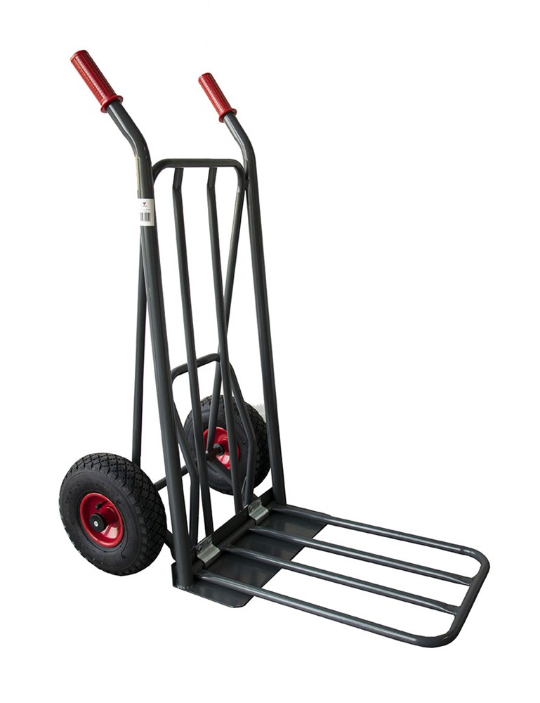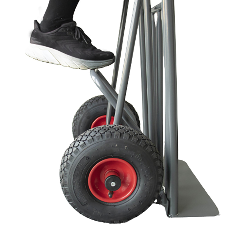 Carrello professionale portapacchi di portata elevata con pedale brevettato per il comodo sollevamento del carico.