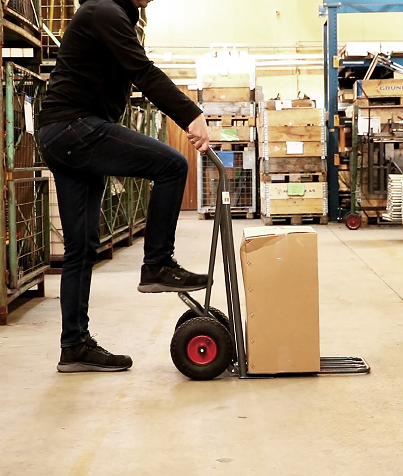 Carrello in acciaio con pedale ergonomico brevettato per il comodo sollevamento del carico.