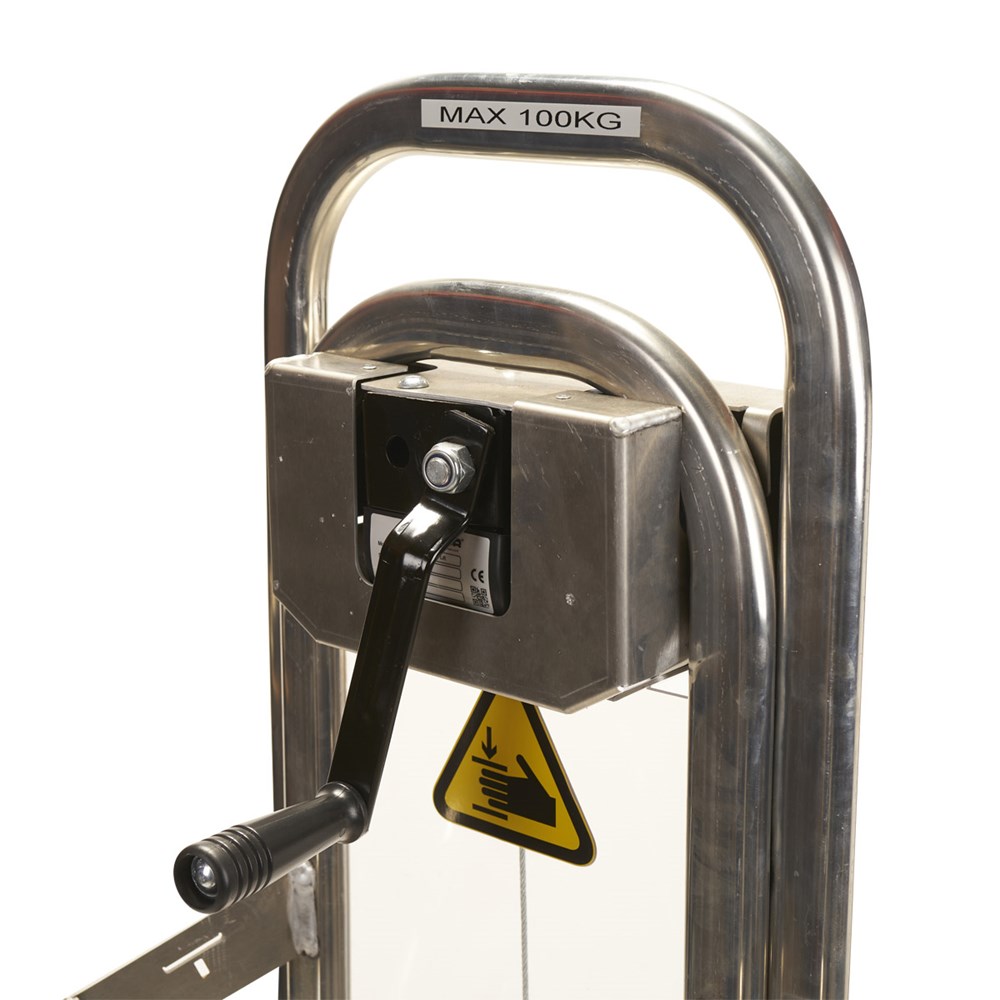Carrello in alluminio portatutto con sistema di sollevamento della pedana superiore tramite verricello
