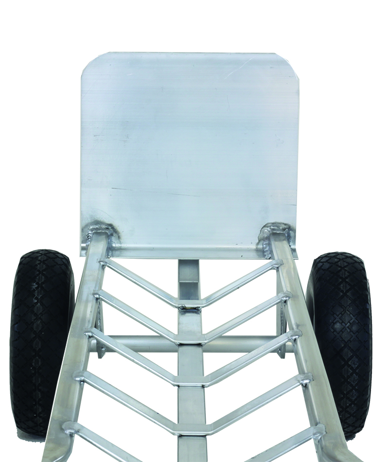 Carrello in alluminio dotato di manopole ergonomiche e con struttura concava perfetta per ospitare le latte di vernice e i piccoli barili senza il rischio che si muovano durante il trasporto.