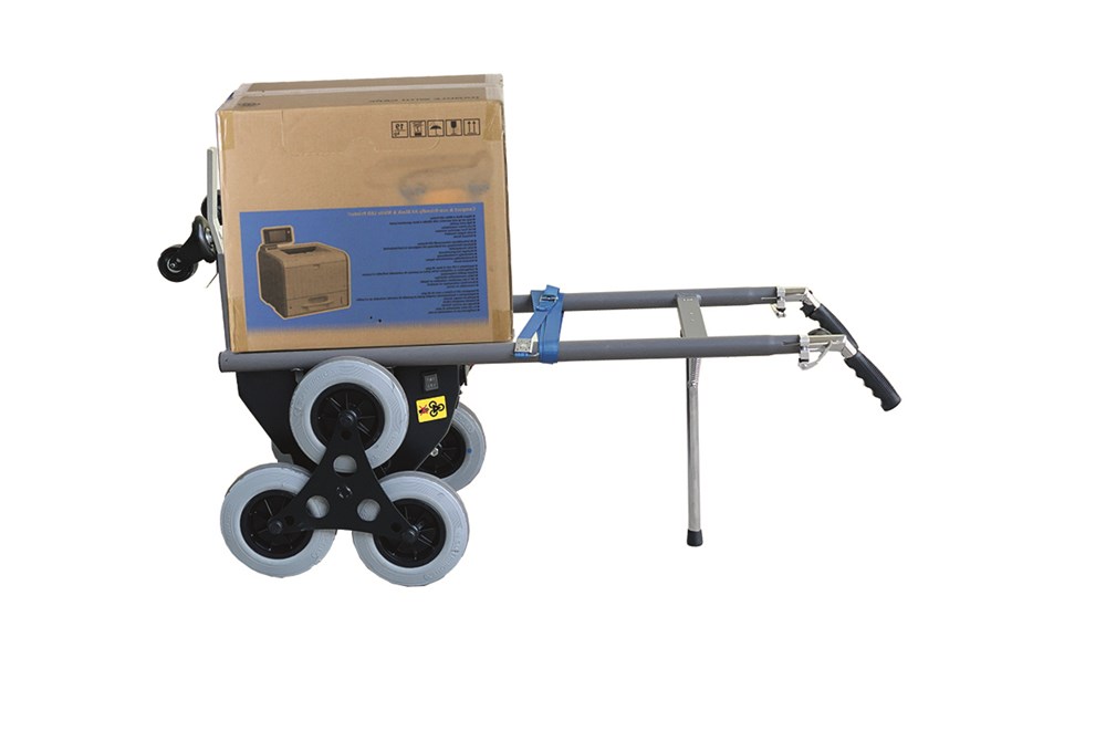 Saliscale elettrico professionale per il trasporto di carichi con ingombri e pesi elevati su tutti i tipi di scale