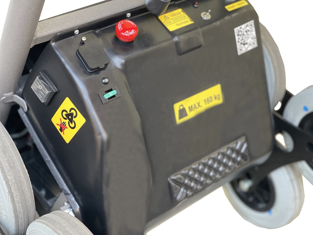 • Il sistema di trazione è elettronico e per mezzo di un motore elettrico viene trasferito alle ruote a stella che girano salendo/scendendo la scala