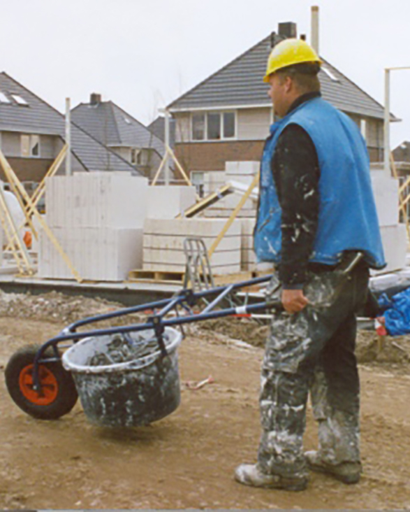 Prodotta con un telaio in acciaio verniciato e staffe predisposte consentono di spostare comodamente grossi secchi di cemento, sabbia o malta con il minimo impatto su schiena ed arti dell’operatore.