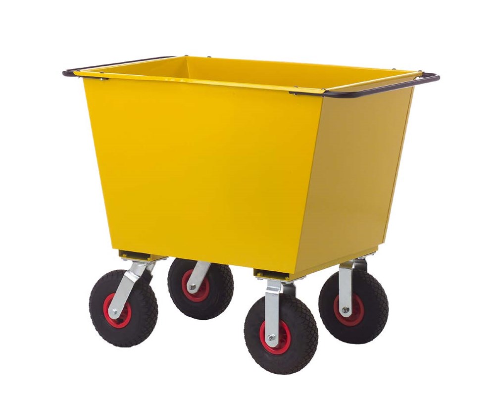 Carriola ad alto volume con struttura rinforzata in acciaio verniciato. Volume di trasporto max 400 litri.