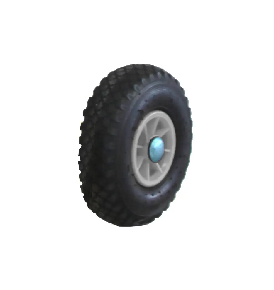 Ruota in poliuretano sempre gonfia. Mozzo in plastica. Diametro assale mm 20