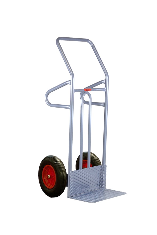 Carrello in acciaio con ruote pneumatiche maggiorate per uso in cantiere, su ghiaia e sabbia