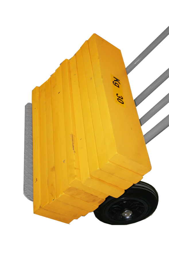 Le ruote del carrello sono posizionate posteriormente rispetto al carrello in modo da non intralciare un eventuale carico voluminoso posto sulla pedana.
