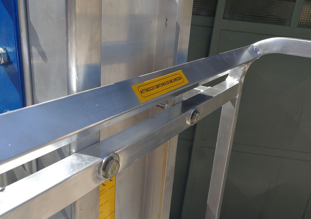 - Piano di calpestio antisdrucciolo con parapetto dotato di punto di ancoraggio per DPI