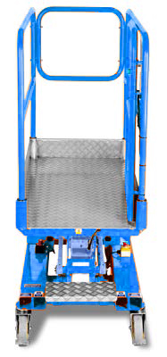 Micropiattaforma verticale a spinta con elevazione elettrica, leggera da trasportare, rapidità di utilizzo, portata kg 250 compresa una persona