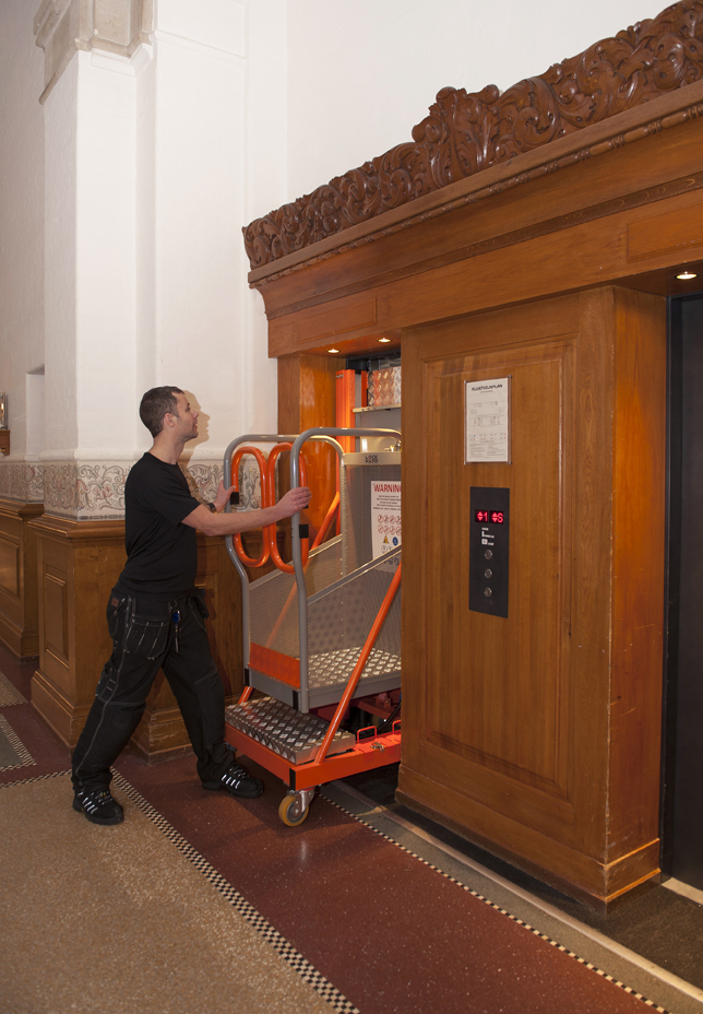 Con elevazione elettrica viene movimentata a spinta dall’operatore.