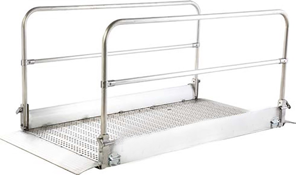 Sono dotate di superficie di transito antiscivolo, corrimani pieghevoli e fermapiede di sicurezza, inoltre le particolari conformazioni della coda e della testata consentono l’adattamento ottimale della rampa in un ampio range di pendenze che possono variare in funzione dell’applicazione.