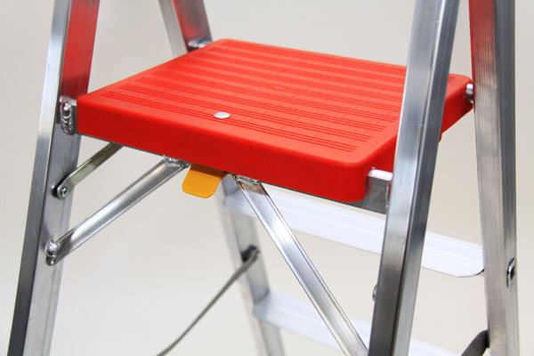 Ampia piattaforma zigrinata da cm 30x26 in polipropilene rinforzato che si blocca automaticamente durante l’utilizzo tramite il gancio di sicurezza in nylon.