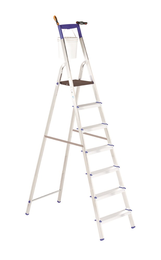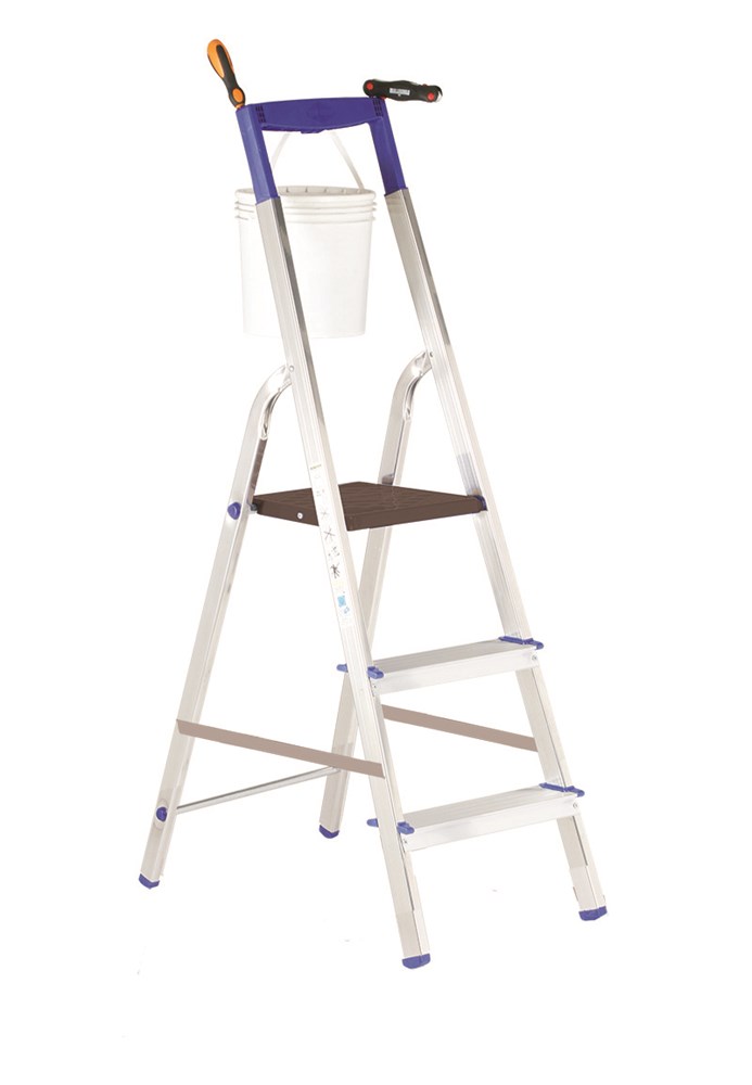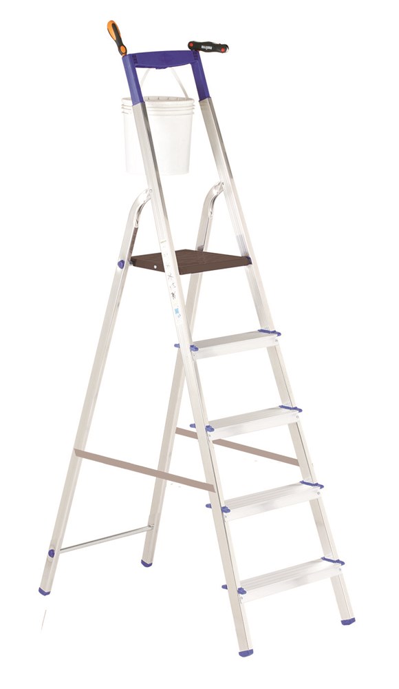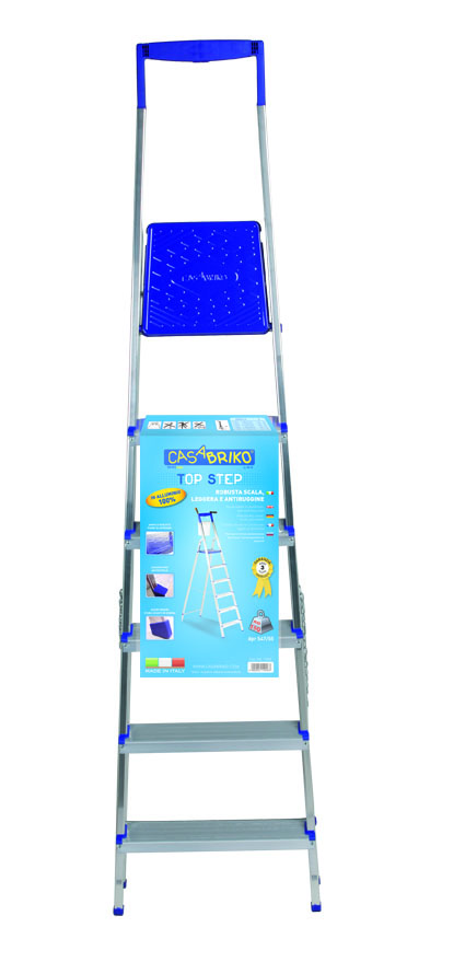 Scala doppia a gradini ad un tronco di salita provvista di piattaforma cm 28x25 e guarda-corpo cm 60.